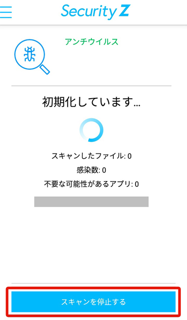 ③スキャンが開始されます。スキャンを途中で止めたい場合は、「スキャンを停止する」をタップしてください。