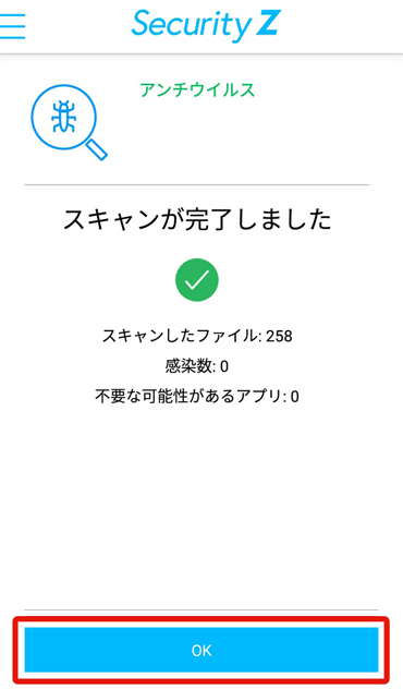 ④スキャンが無事に完了したら、「OK」をタップしてください。