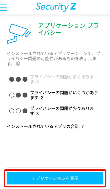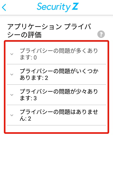 ③各アプリのプライバシーの問題の度合い毎にアプリの一覧を確認することが出来ます。
