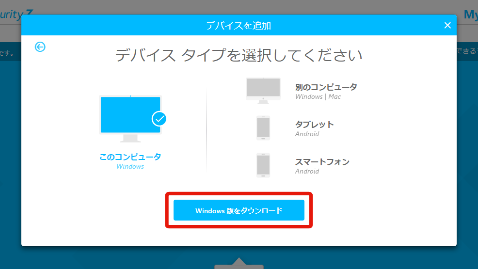 ④「このコンピュータ」が選択されていることを確認し、「Windows 版をダウンロード」をクリックします。