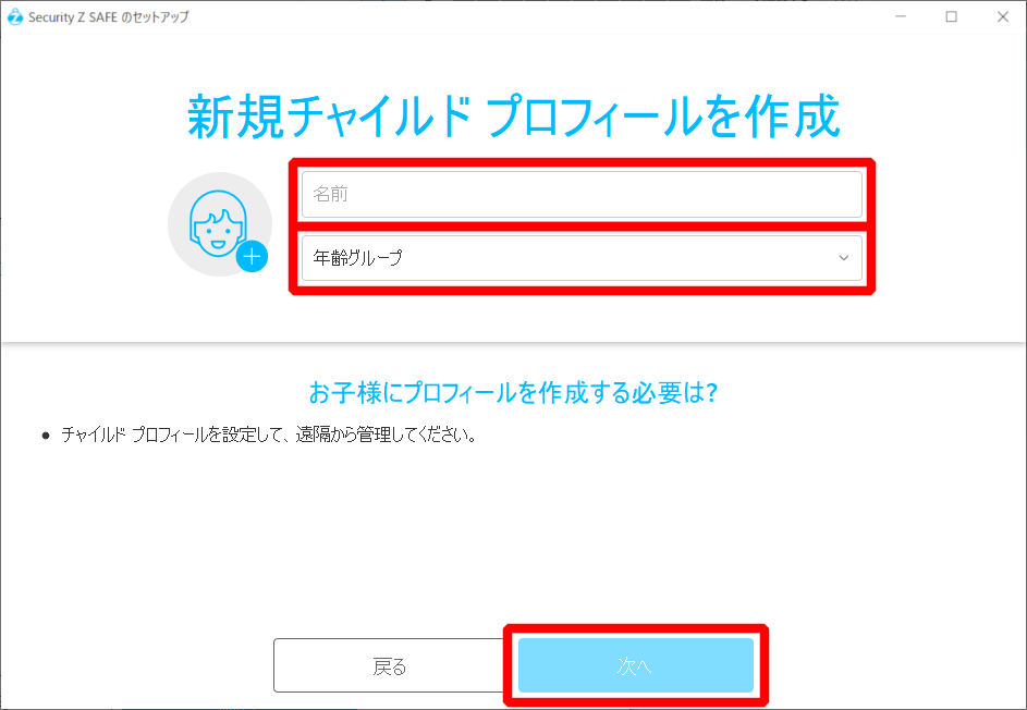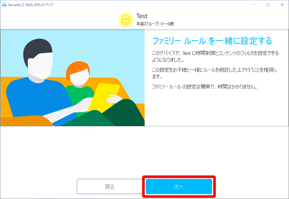 b. 保護対象・家族のルールを設定する子供の名前を入力します。