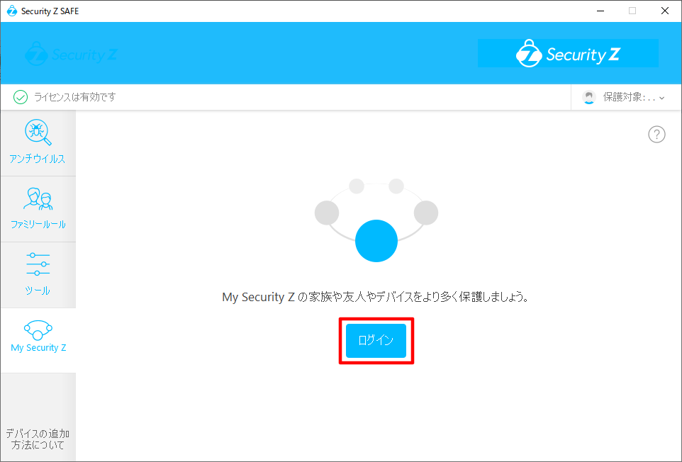 ①「【重要】オンラインセキュリティサービス Security Z 会員IDとパスワードのお知らせ」メールに記載されているSecurity Z 会員ID(メールアドレス)とパスワードで、 My Security Z に、ログインします。