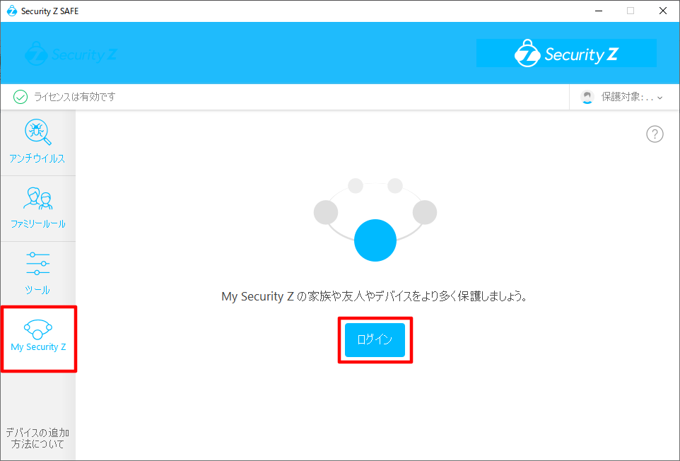 ①「【重要】オンラインセキュリティサービス Security Z 会員IDとパスワードのお知らせ」メールに記載されているSecurity Z 会員ID(メールアドレス)とパスワードで、 My Security Z に、ログインします。