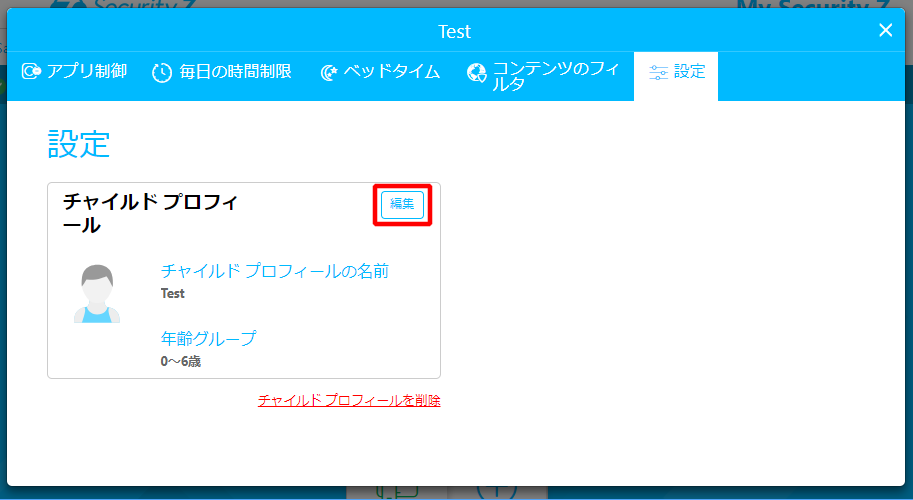c. 「設定」は、チャイルドプロフィールの編集/設定が可能です。