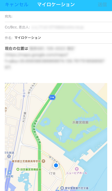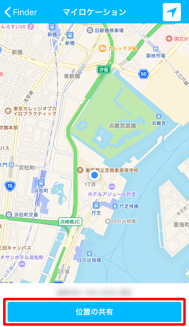 ③現在地の住所の下に表示されている「位置の共有」をタップして下さい。
