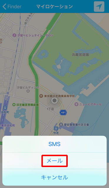 ⑥端末の位置情報の検索が開始されます。正常に探知出来た場合は、位置情報が地図上に表示されます。