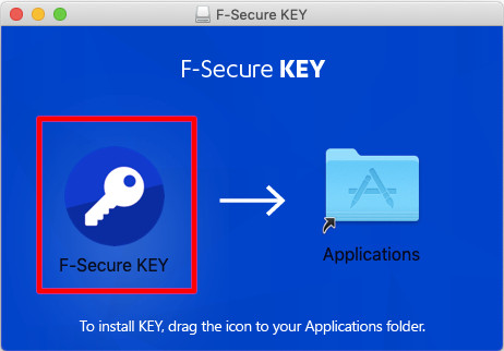 ⑥”F-Secure KEY.app”の鍵マークをドラッグして右側の”Applications”フォルダマークの上に移動してください。