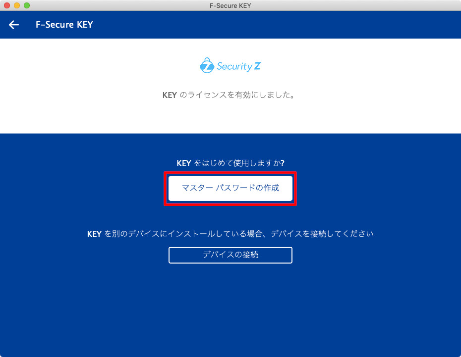 ⑩KEYを初めて使用する場合にはマスターパスワードを設定します。[マスターパスワードの作成]をクリックしてください。
