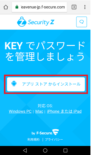 1.My Security Z(https://safeavenue-jp.f-secure.com/iframe/-sso/security_z/)へログインし、