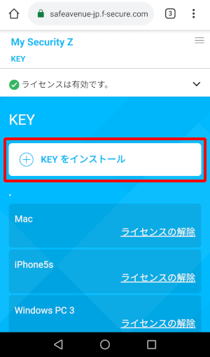 3.「KEYをインストール」をタップします。