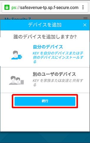 4.「自分のデバイス」または「別のユーザのデバイス」を選択し、「続行」をタップしてください。