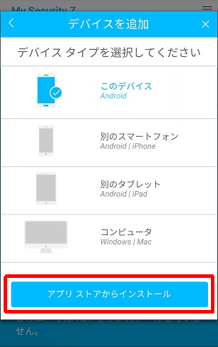 このデバイスを選択した場合は「アプリストアからインストール」をタップし、【6.】に進んでください。
