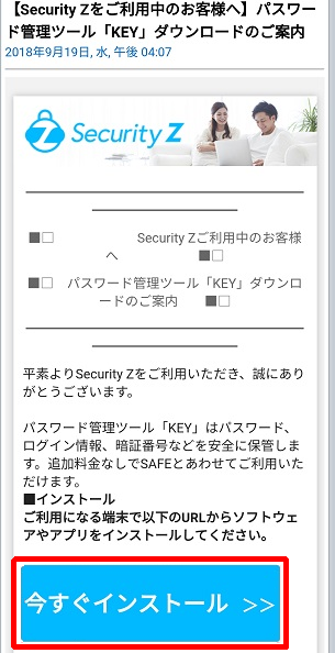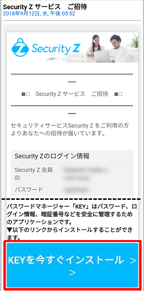 18.KEYのインストールURLの記載されたメールが指定したメールアドレスに送信されます。「KEYを今すぐインストール」をタップしてください。