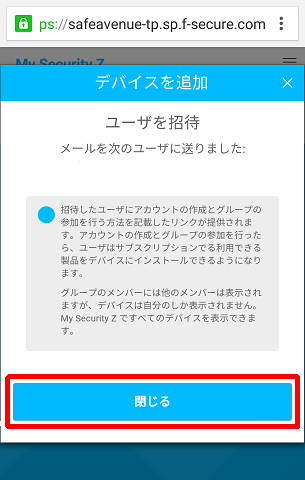 17.招待したユーザは「閉じる」をタップしてください。あとは招待されたユーザの作業となります。