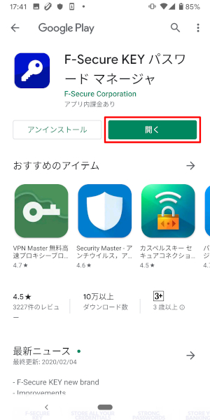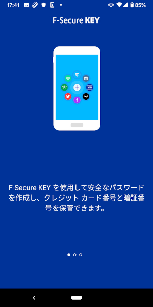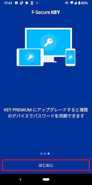 13.インストールの完了です。KEYを初めて使用する場合にはマスターパスワードを設定します。[マスターパスワードの作成]をタップしてください。