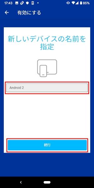 12.デバイスの名前を指定して[続行]をタップしてください。