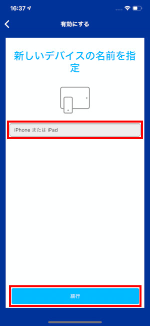 18.デバイスの名前を入力して「続行」をタップしてください。