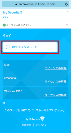 1.My Security Z(https://safeavenue-jp.f-secure.com/iframe/-sso/security_z/)へログインし、