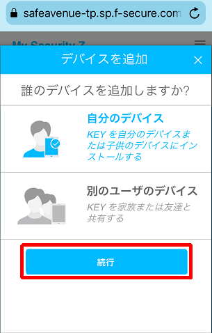 4.「自分のデバイス」または「別のユーザのデバイス」を選択し、「続行」をタップしてください。
