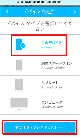 このデバイスを選択した場合は「アプリストアからインストール」をタップしてください。