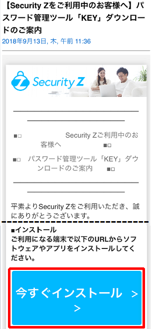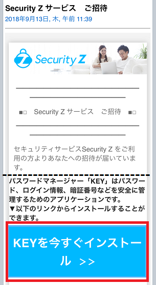 22.KEYのインストールURLの記載されたメールが指定したメールアドレスに送信されます。「KEYを今すぐインストール」をタップしてください。