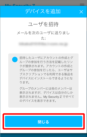 21.招待したユーザは「閉じる」をタップしてください。あとは招待されたユーザの作業となります。