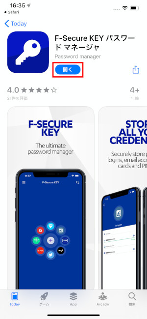7.KEYのAppStoreページが開いたら、「入手」をタップしてください。