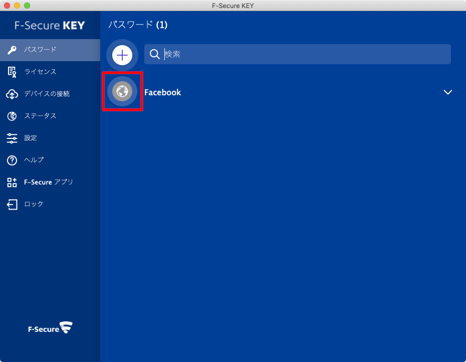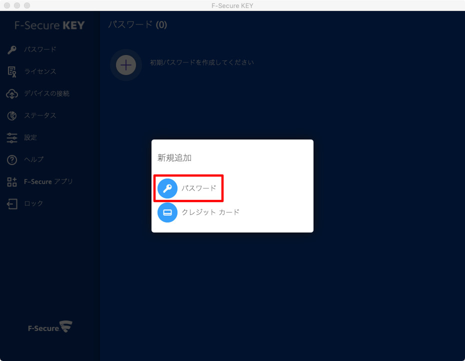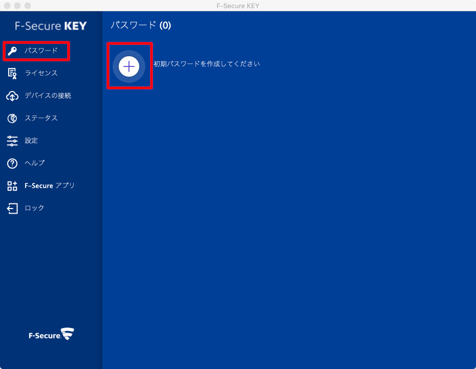 ①ホーム画面上にある「パスワード」をクリックした後、「+」をクリックしてください。