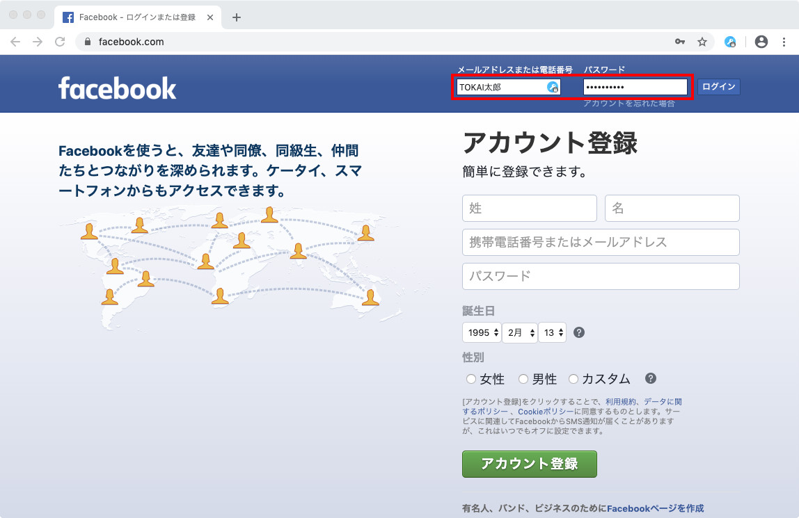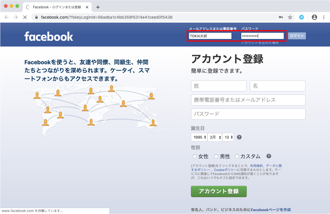 ⑭自動で登録したユーザ名とパスワードが入力されてログインします。