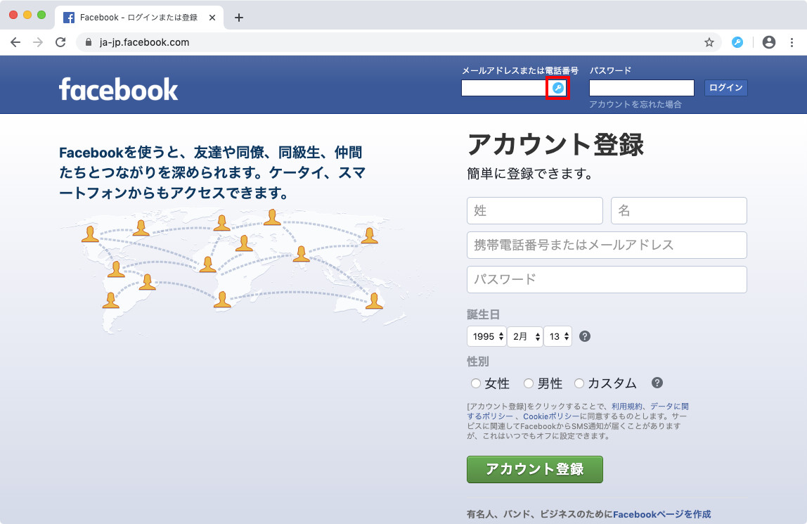 ⑫対象サービスのログイン画面から「KEY」を利用する場合、ユーザ名(ID等)の入力フォームに表示された「KEY」アイコンをクリックします。