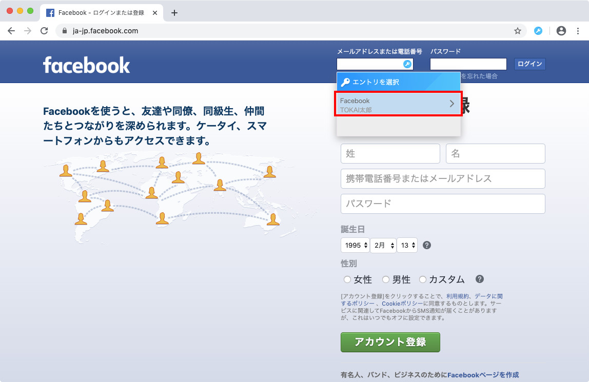 ⑪対象サービスのログイン画面が表示され、自動で登録したユーザ名とパスワードが入力されてログインします。