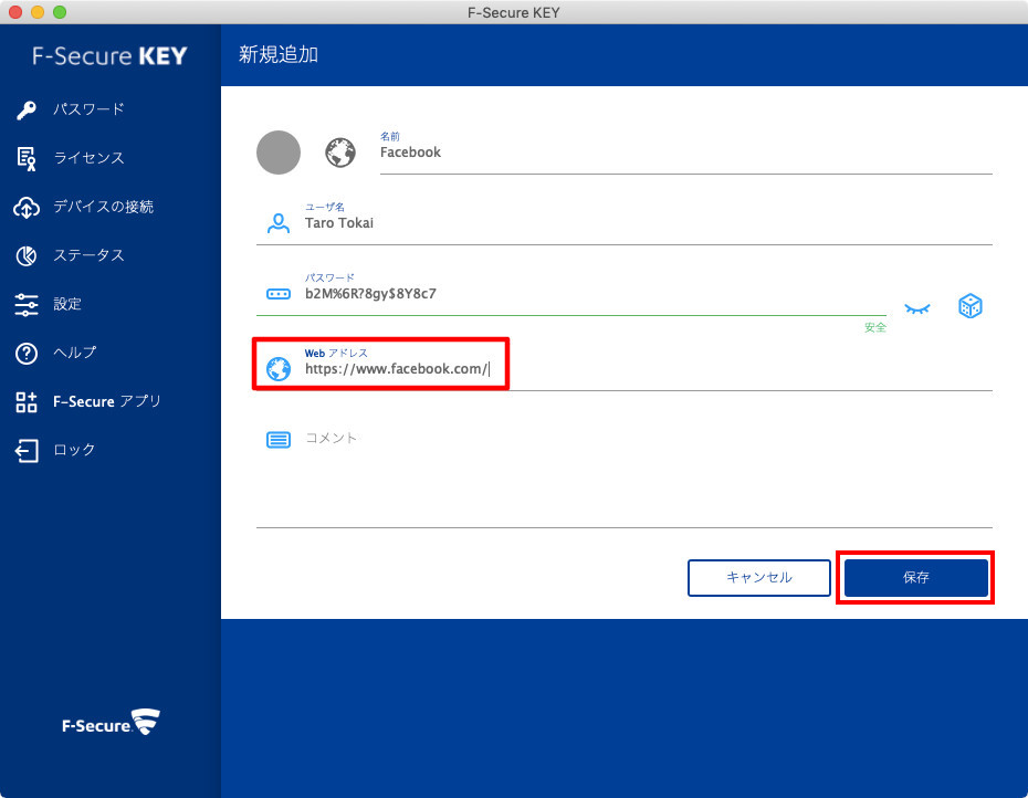 ⑨最後にご利用になられるサービスの「Webアドレス」を入力し、「保存」をクリックしてください。