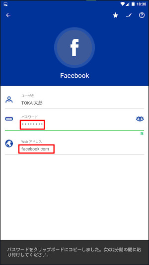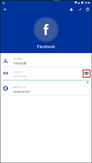 ⑨先ほど登録したパスワード画面が表示されます。目のアイコンを押せば、パスワードを表示させることも可能です。