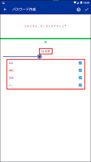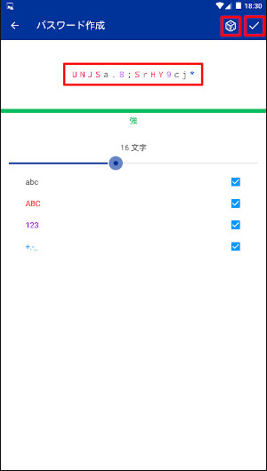 ⑤サイコロをクリックすると、作成されたパスワードが表示されます。よろしければ「レ」チェックを押してください。
