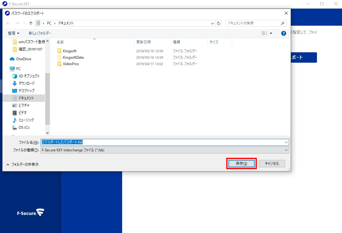 ③エクスポートファイルの保存先を指定できますので、任意の場所に保存してください。