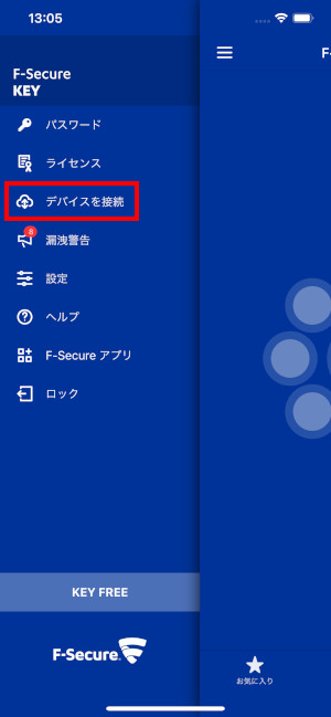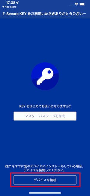 ④パスワードを共有させたいデバイスに「F-Secure KEY」をインストールし、「デバイスを接続」をクリックしてください。