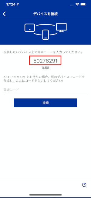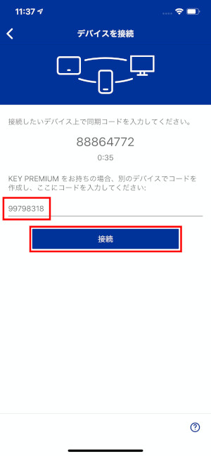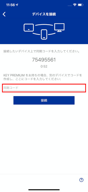 ⑤コードを入力する画面が表示されますので、3で表示された同期コードを入力してください。