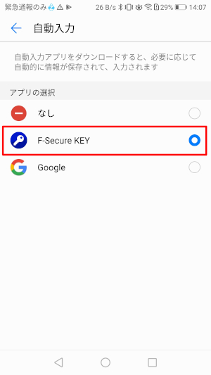 ⑪アプリ選択画面が表示されますので、「F-Secure KEY」をタップしてください。