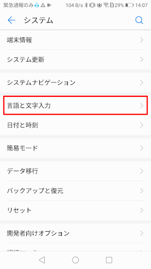 ⑨「言語と文字入力」をタップしてください。