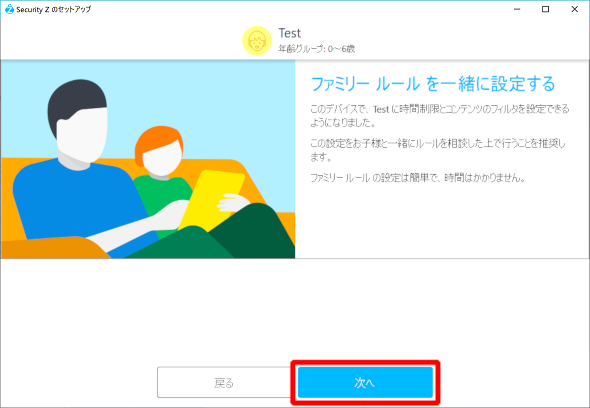 ⑫ファミリールールの設定をおこないます。[次へ]をクリックしてください。