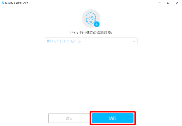 ⑩新しく子供アカウントを作成する場合はそのまま[続行]をクリックしてください。