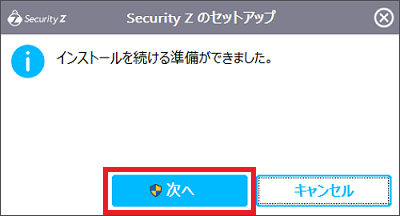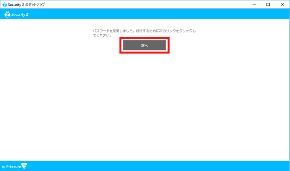 ⑧パスワードの変更が完了すると次の画面が表示されますので「次へ」をクリックしてください。