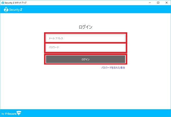 ⑥Security Z SAFEのログイン画面が表示された場合は、「【重要】オンラインセキュリティサービス Security Z 会員IDとパスワードのお知らせ」メールに記載されているSecurity Z 会員ID(メールアドレス)とパスワードを入力し、[ログイン]をクリックしてください。