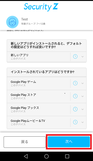⑮アプリ制御の設定をおこない[次へ]をタップしてください。