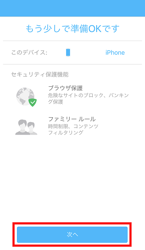 ⑯「もう少しで準備OKです」の画面が表示されますので、[次へ]をタップしてください。