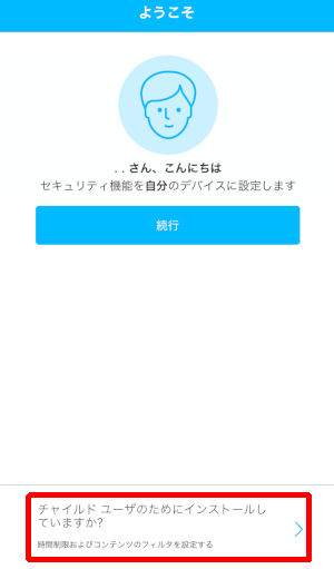 ⑨デバイスのアカウント使用者が子供の場合は「チャイルドユーザーのためにインストールしていますか?」をクリックしてください。自分の場合は、[続行]をクリックしてください。