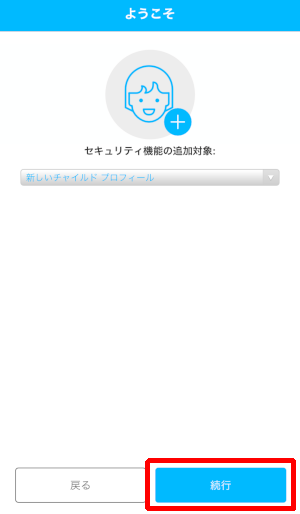 ⑩新しく子供アカウントを作成する場合はそのまま[続行]をクリックしてください。