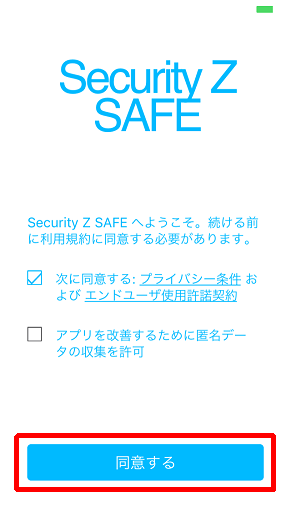 ④"プライバシー条件"、"エンドユーザ使用承諾契約"を確認したうえで、[同意する]をタップしてください。