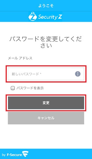 ⑥初回ログイン時には、パスワードを変更する必要があります。新しいパスワードを入力し、「変更」をタップしてください。入力しているパスワードの強度が「弱」だと変更することができません。「中」以上にする場合は、8文字以上で、数字が1文字以上含まれ、アルファベットの大文字または小文字を使用する必要があります。