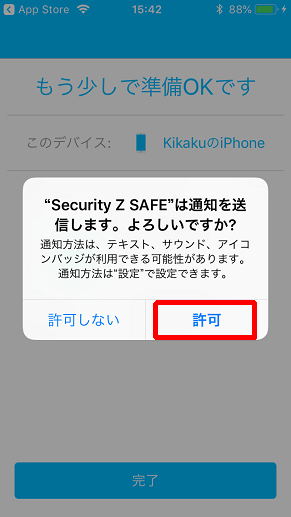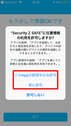 [このAppの使用中のみ許可]を選択した場合、Security Z SAFEを開いているときのみ使用されます。